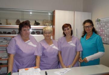 Schwester Heike bei der Anmeldung Heike, Margitta, Linda und Dr. Francke